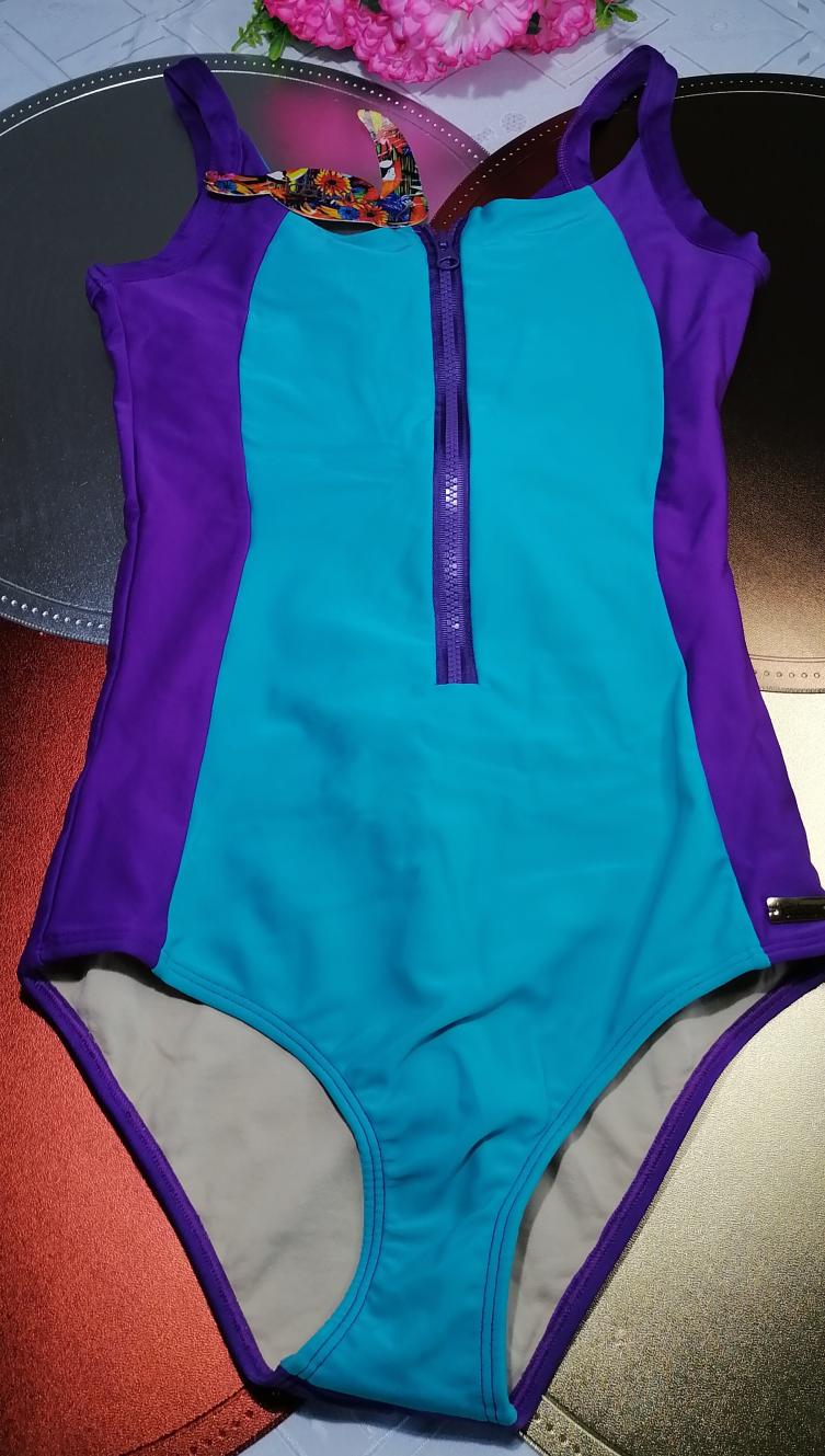 Malla de natacion de lycra lisa combinada con cierre delantero
